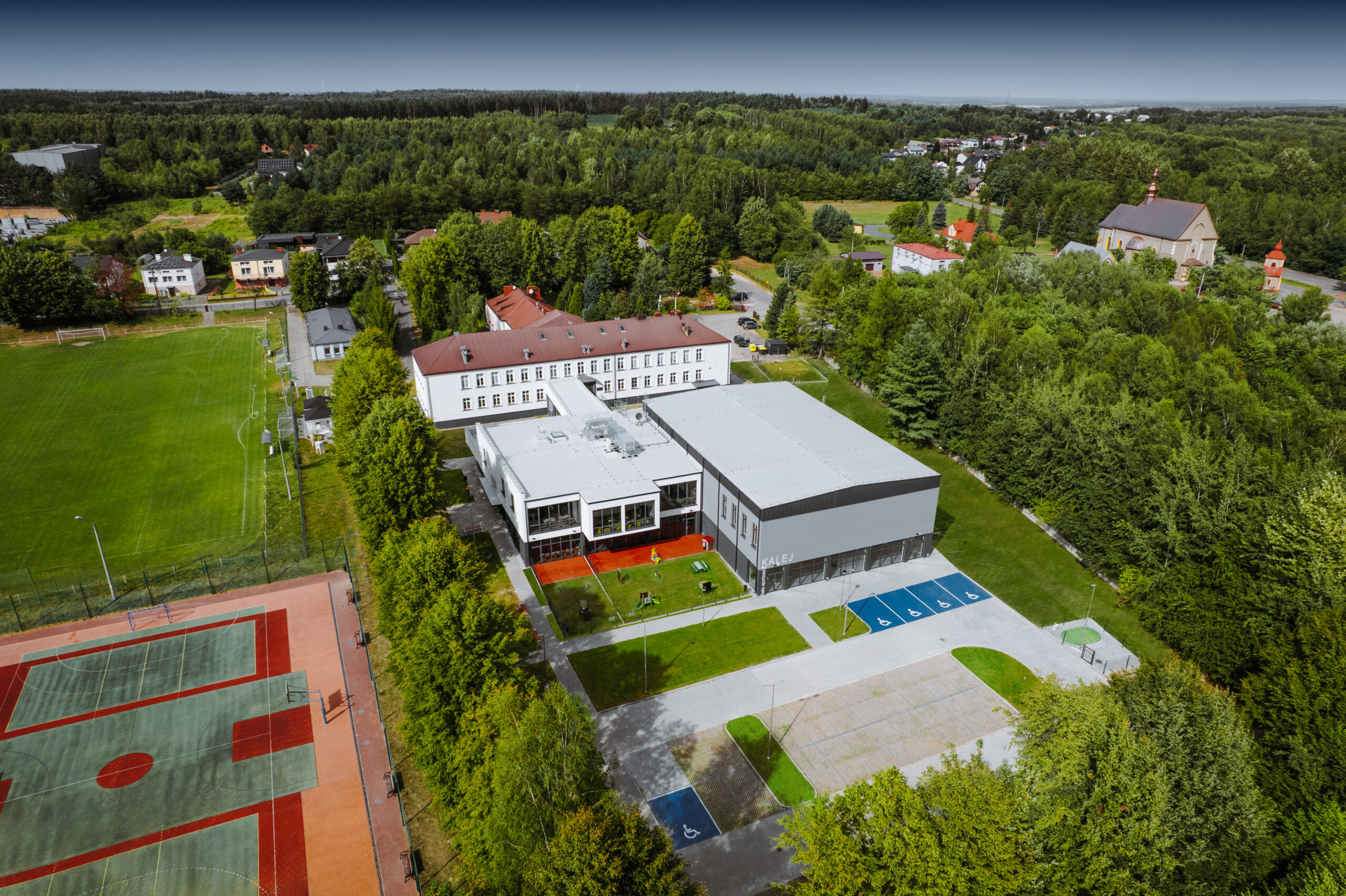 Rozbudowa budynku szkolnego o salę gimnastyczną z zapleczem szatniowym i higieniczno- sanitarnym oraz o przedszkole 4-ro oddziałowe z wyodrębnionym oddziałem żłobkowym w systemie zaprojektuj i zbuduj.